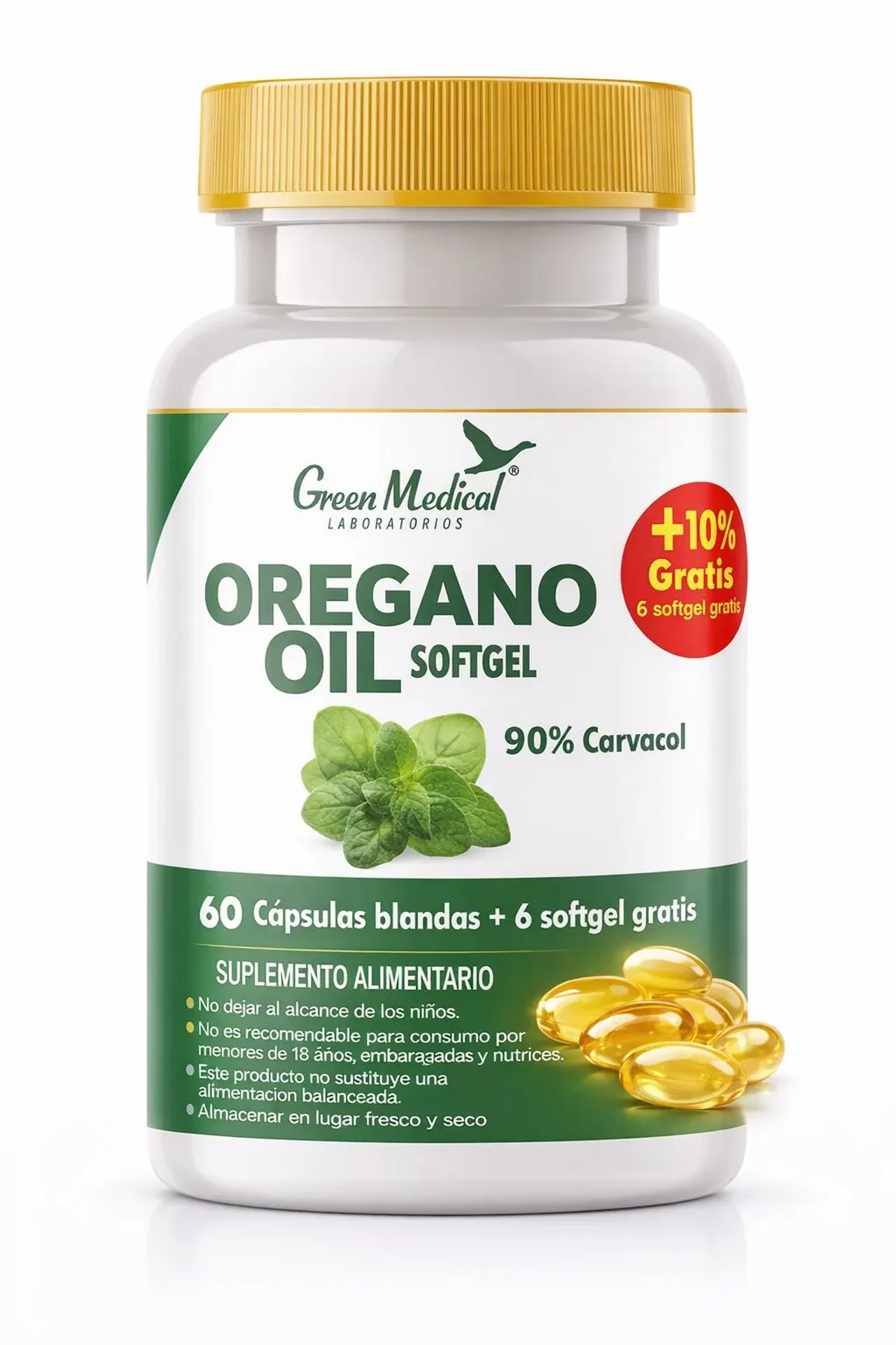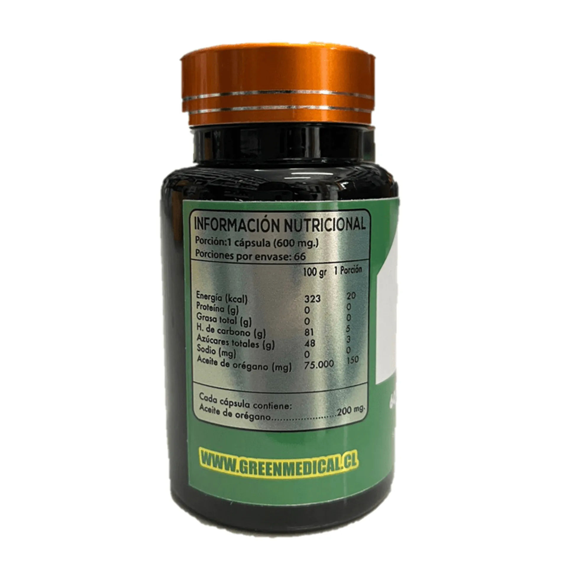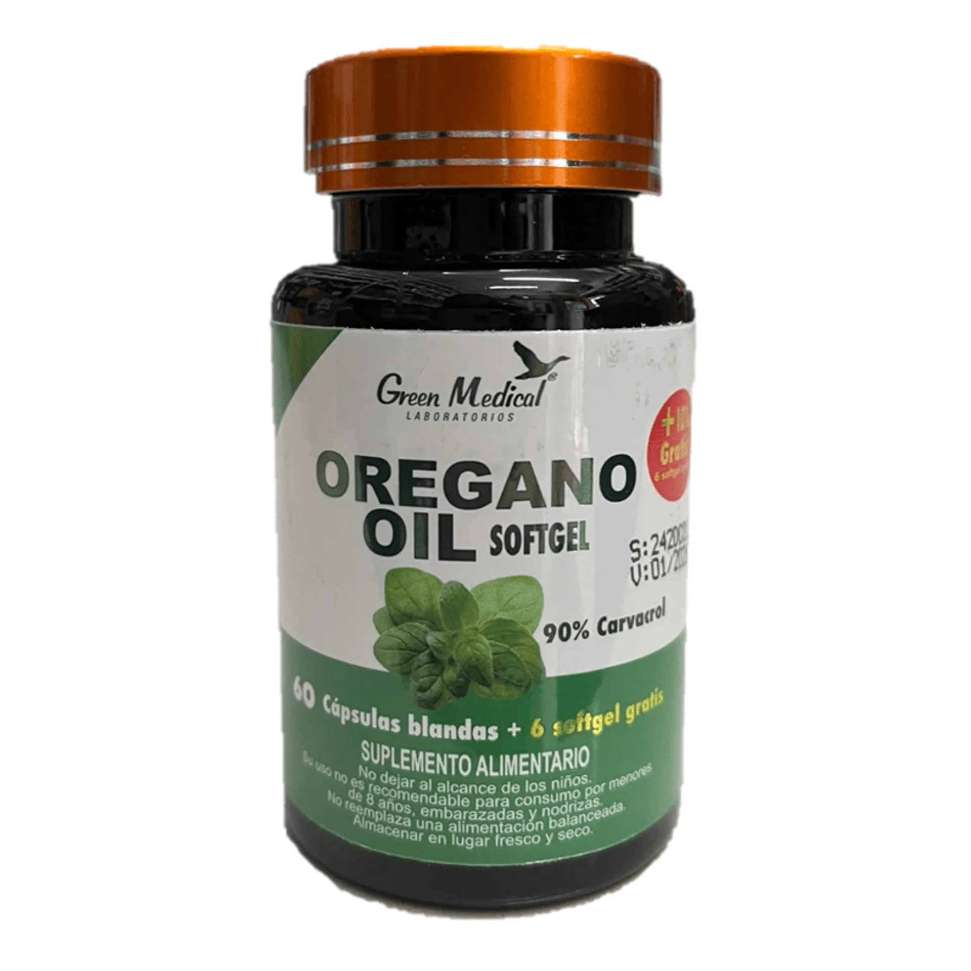 Aceite de Orégano Oil 200 mg Green Medical es un suplemento concentrado elaborado a partir de aceite de orégano estandarizado con 90% de carvacrol, uno de los compuestos activos más potentes del orégano. Está diseñado para apoyar el bienestar digestivo e inmunológico de forma natural