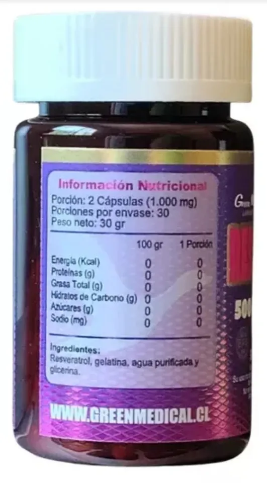 Resveratrol 60 Cápsulas 500 mg – Green Medical: Potenciando tu Salud Natural