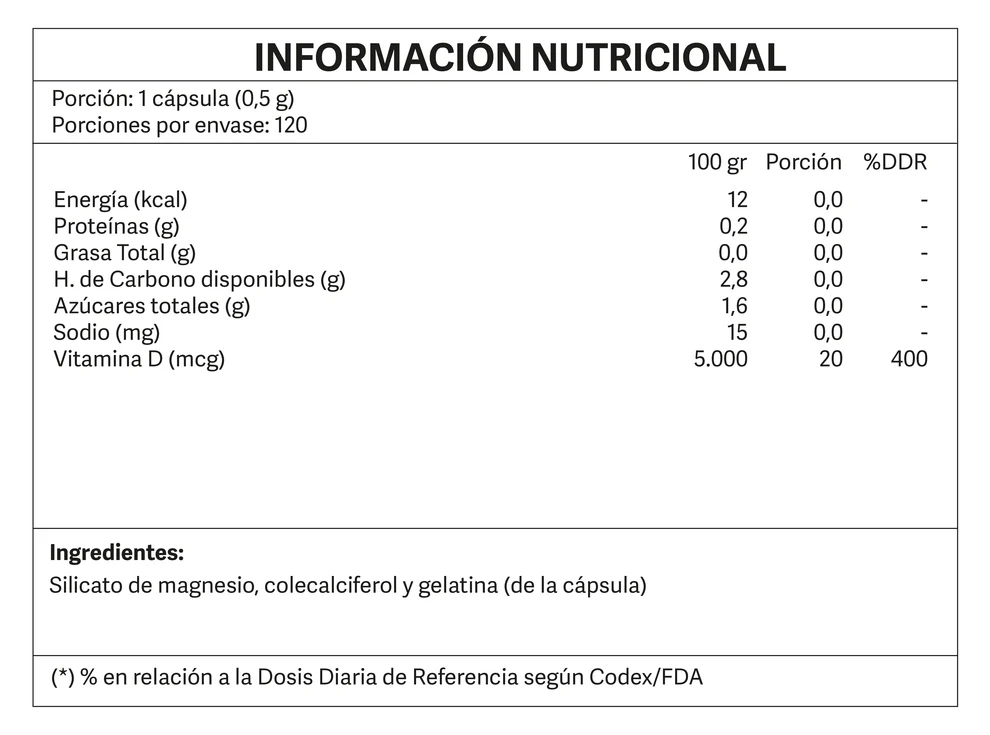 Beneficios Esenciales: – **Fortalece tus huesos**: La Vitamina D3 es fundamental para la absorción de calcio, promoviendo una estructura ósea sólida y saludable. – **Apoya el sistema inmunológico**: Contribuye al funcionamiento normal de las defensas del organismo, ayudándote a mantenerte enérgico y protegido. – **Mejora el estado de ánimo**: Estudios sugieren que niveles adecuados de Vitamina D3 pueden influir positivamente en tu bienestar emocional, ayudando a combatir la tristeza y el cansancio.