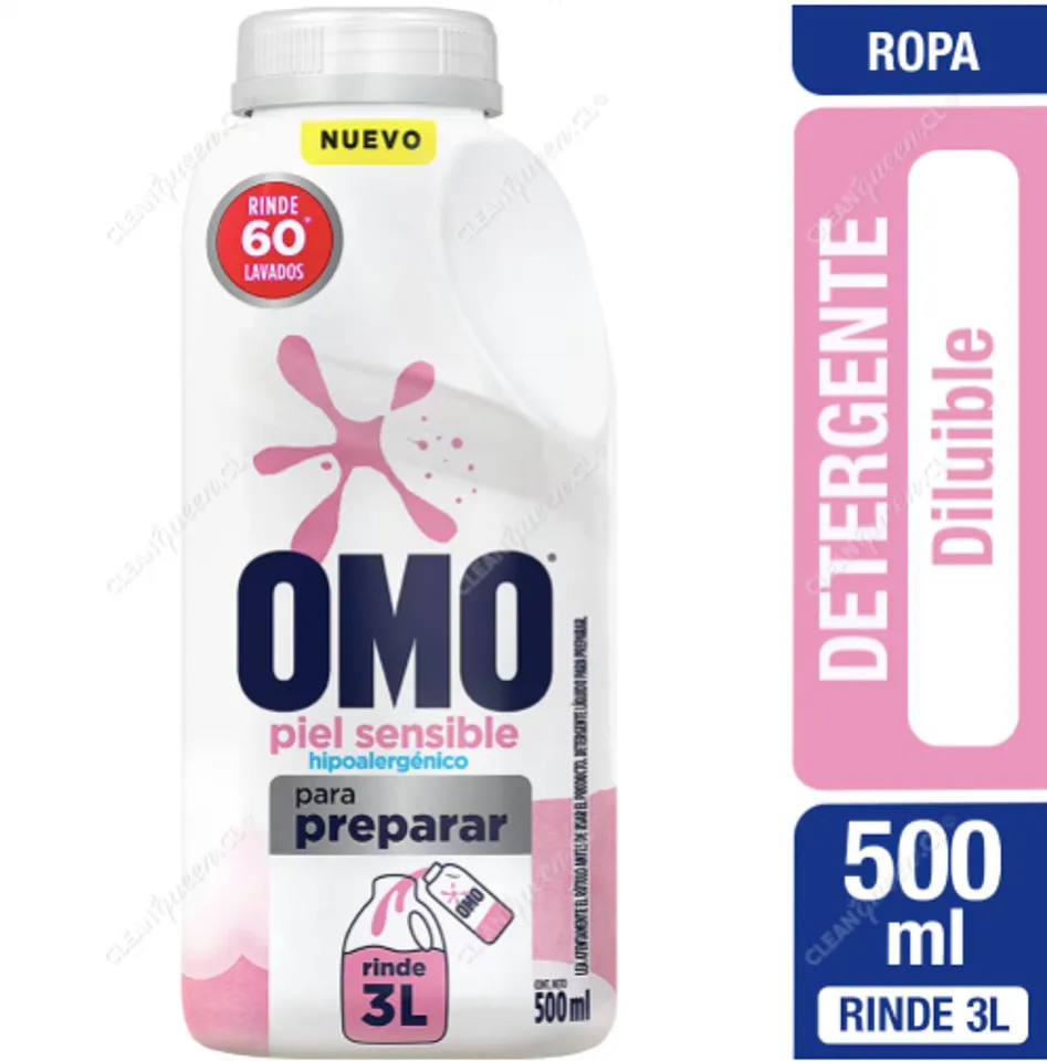Detergente Omo para diluir Hipoalergénico 500 ML. Rinde 3 litros.